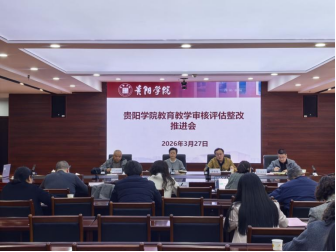 2026年3月27日下午15:00,2025-2026年春季学期贵阳学院教育教学审核评估整改工作推进会于九思楼八楼会议室召开。会议由教务处处长黄先智主持,副校长罗红芳、招就处处长、实验中心主任、各专业学院教学副院长,教学科研科科长、教务处全体工作人员参加会议。